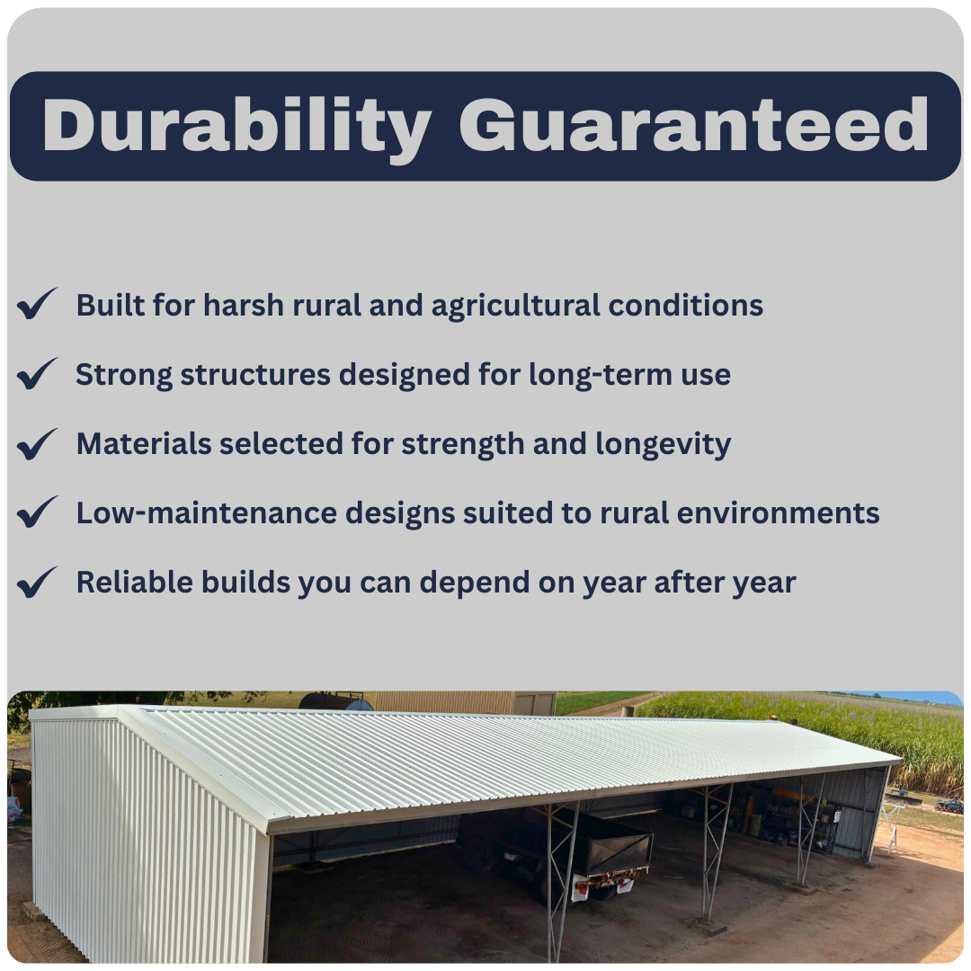 Versatile, purpose-built farm sheds designed to suit your property and operations. From open-bay sheds for easy machinery access to fully enclosed structures for secure storage, our designs maximise spans and clearances without compromising strength or longevity. With flexible layouts, optional inclusions, and both structural steel and kit-style options available, we deliver practical solutions tailored to your needs and budget.